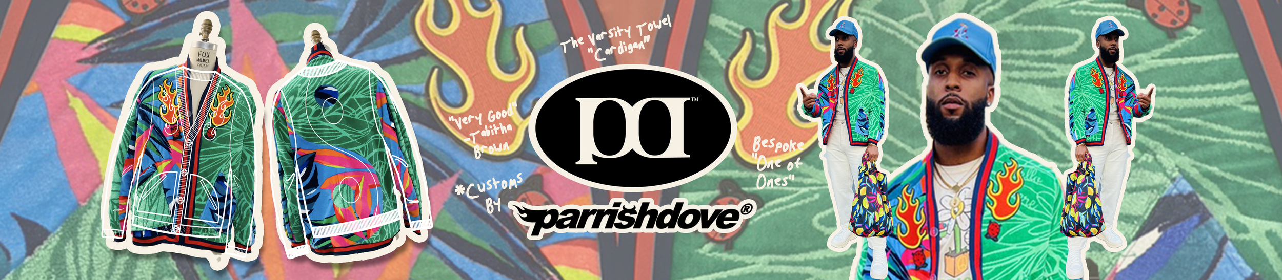 Shop the Collection Categories: Select a Category Custom Outerwear Bottoms Specialty Tops Shop the Collection Custom Outerwear | Bottoms | Specialty | Tops | PD X JF CARGO SHANTS $150.00 Colorful Fringe Chaps from $100.00 PD DOVE PONCHO Lucky Green $50.00 PD x SEKOOSKWE Recycled Denim Dove Poncho Sale Price: $100.00 Original Price: $300.00 Sale Custom Varsity Towel Cardigan | Size Youth Small $200.00 Custom Varsity Towel Cardigan | Size Youth Medium $250.00 Custom Varsity Towel Cardigan | Size Youth Large $275.00 Custom Varsity Towel Cardigan | Size Adult S/M $300.00 Custom Varsity Towel Cardigan | Size Adult L/XL $350.00 Custom Varsity Towel Cardigan | Size Adult XXL $400.00 Classic Duke Robe | Belaire Bleu $45.00 Tuxedo Boxers | Black $100.00 Tuxedo Boxers | Ivory $100.00 Iridescent Disco Trousers $250.00